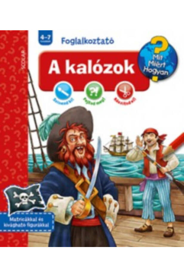 A Ravensburger Mit? Miért? Hogyan? Foglalkoztató sorozatának e kötete a kalózokkal ismerteti meg az apróságokat. Kik voltak a kalózok, milyen volt az élet a kalózhajón, hogyan öltözködtek a kalózok és mit csináltak a zsákmánnyal? A foglalkoztató játékos feladatait megoldva a gyerekek e kérdésekre is megkapják a választ.